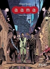 Frederik Peeters znany w Polsce z komiksu Niebieskie pigułki przedstawia pięknie zrealizowaną i intrygującą wizję odległej przyszłości. W 2013 roku Aama otrzymała nagrodę dla najlepszej serii na Festiwalu Komiksu w Angouleme.