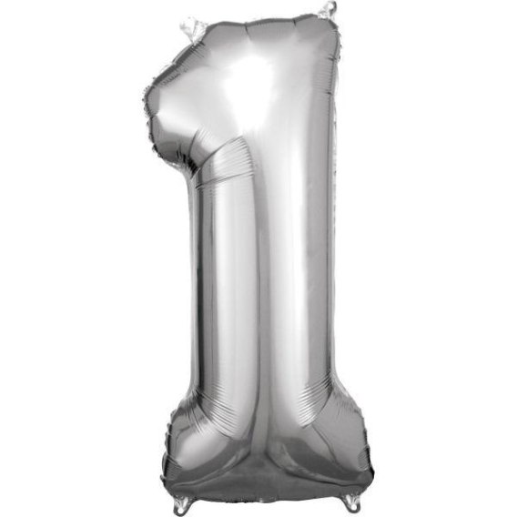 Balon foliowy cyfra 1 srebrna 38x86cm