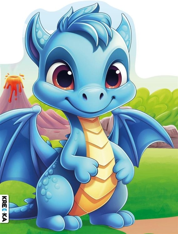Kolorowanka z naklejkami skrojona na kształt smoka. Rewelacyjna zabawa i uczta dla oczu malucha.