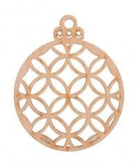 Drewniana bombka ażurowa naturalna. Średnica 8cm, wysokość całkowita 10cm. W opakowaniu 3szt