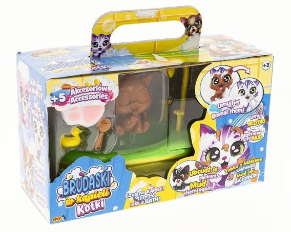 Poznaj kolekcję przesłodkich kotków, które można brudzić błotkiem, myć i zaczynać całą zabawę od nowa! Brudaski w kąpieli kotki to urocze figurki, które zostały stworzone po to, by zapewnić dzieciom mnóstwo radości i niezliczone możliwości kreatywnej zabawy. Dzięki specjalnej powłoce łatwo je wyczyścić, a zabawę ulepszą dołączone do kotków akcesoria.
