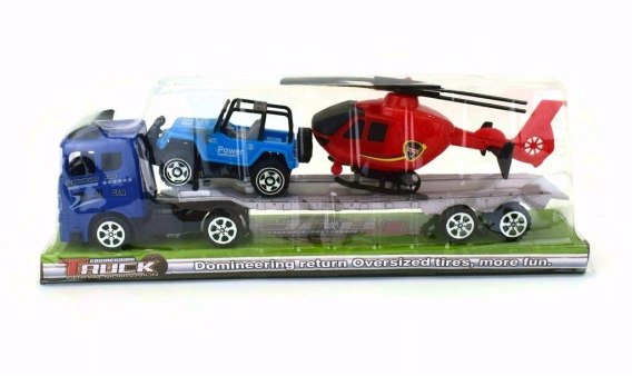 Ciężarówka z lawetą dwupoziomową to masa zabawy dla każdego dziecka. Lawetę można wykorzystać do przewozu ratunkowych autek z zestawu lub innych pojazdów. Lawetę można odczepić od ciężarówki, a górna rampa i tylna klapa jest rozkładana, tak aby górne autka mogły swobodnie zjechać. Opakowanie typu Window Box ułatwia zapoznanie się z funkcjami zabawki.