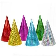 Czapeczka imprezowa z hologrficznym efektem. Wysokość: 23 cm. Czapeczka wyposażona w wygodną gumkę podtrzymującą ją na głowie. Niezbędny gadżet na każdej imprezie, zarówno urodzinowej jak i karnawałowe
