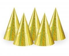 PAPIEROWE CZAPECZKI URODZINOWE, HOLOGRAFICZNE, ZŁOTE