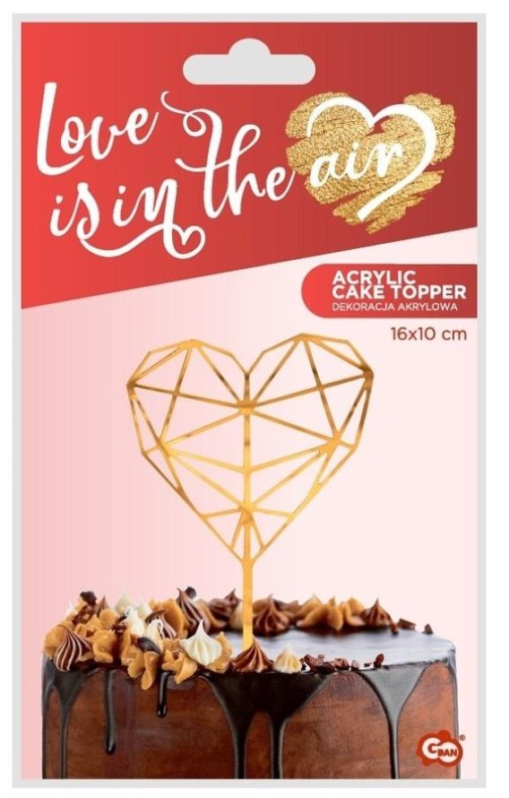 Dekoracja akrylowa na tort diamentowe serce złota