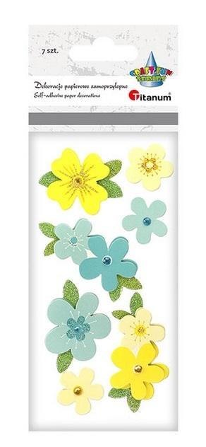 Dekoracje samoprzylepne papierowe 3D na piance 3D kwiaty z kryształkiem mix rozmiarów żółte i niebieskie 7szt.