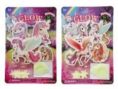 Zestaw naklejek i ozdób świecących w ciemności z motywem jednorożców. W komplecie różne wzory koników oraz elementy dekoracyjne jak gwiazdki, chmurki i księżyce. Zabawka przeznaczona dla dzieci od lat 3. Produkt występuje w kilku wersjach, wybierany losowo. Cena dotyczy jednej sztuki. Produkt na blistrze.
