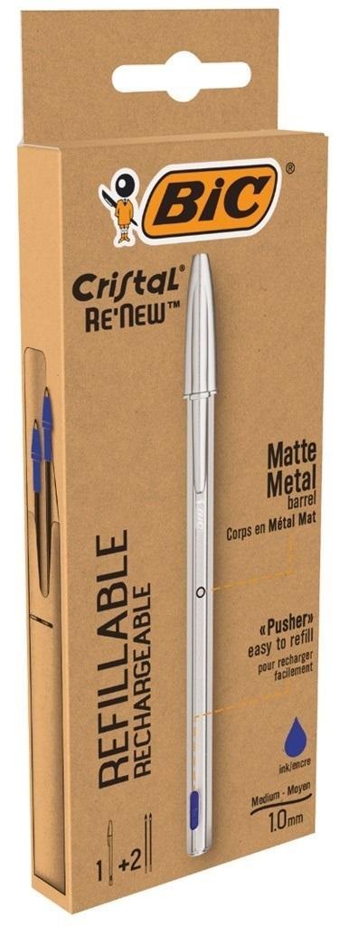Długopis Cristal Re'new Metal niebieski + 2 wkłady