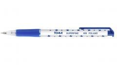 Długopis automatyczny w plastikowej obudowie w gwiazdki, klip i gumowy uchwyt w kolorze tuszu, trwała kulka z węglików spiekanych wolframu 0.5 mm. Super cienko-piszący opatentowany wkład Floating Ball ® szwajcarskiej firmy Premec.