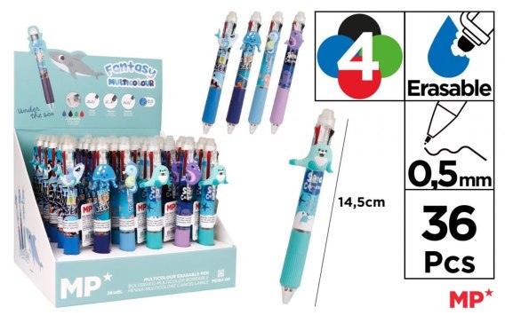 Długopis ścieralny 4-kolorowy Morskie zwierzęta (36szt)