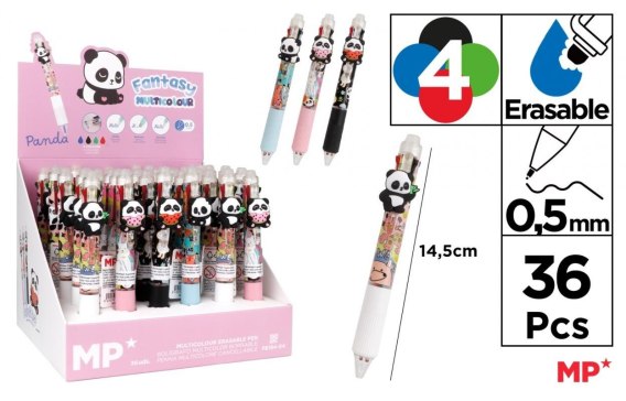 Długopis ścieralny 4-kolorowy Pandy (36szt)