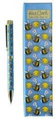 Przepiękny długopis z kolorowym wzorem Alex Clark. Łatwo obracana stalówka pozwala na płynne rozpoczęcie pisania. Posiada wkład z czarnym atramentem. Długopis wykończony jest złotem oraz zapakowany jest w ilustrowane, pasujące wzorem pudełko. Rozmiar długopisu: 140 mm x 10 mm.