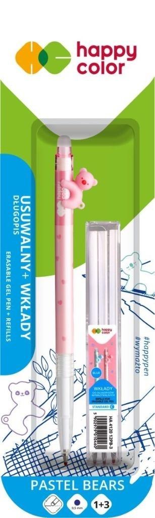 Długopis wymazywalny Pastel Bears nieb+3 wkład mix