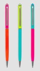 Metalowy długopis ze stali nierdzewnej wykończony neonowym kolorem.