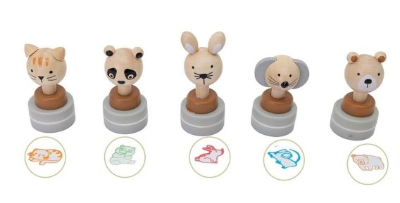 Kolorowe stempelki dla dzieci odbijają na papierze grafikę zwierzątka, taką samą jak sam stempel. Posiada gąbkę nasączoną tuszem - tusz można uzupełniać. Pieczątka jest zamykana, co zabezpiecza przed wysychaniem tuszu. Stempelek wykonany z drewna. wymiary stempelka : średnica podstawy 3.2 x wysokość 7 cm wiek 3+ wymiary display'a: 24 x 19 x 9(+10) cm
