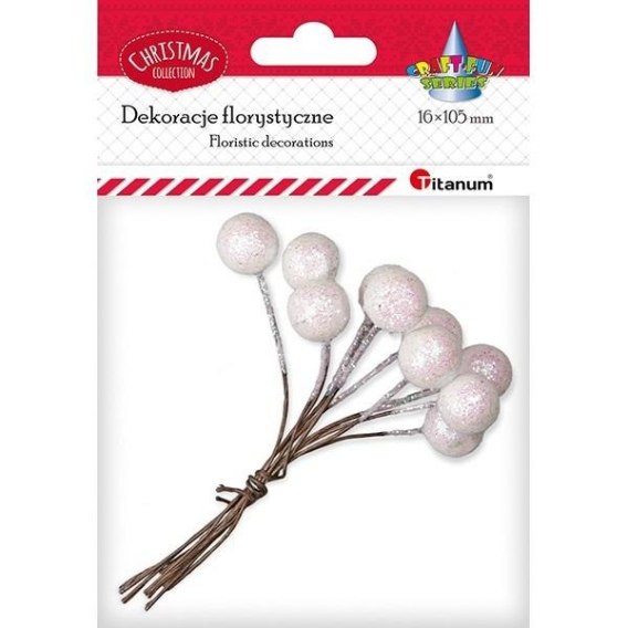 Drucik z kulką 15mm białą brokatową 10szt