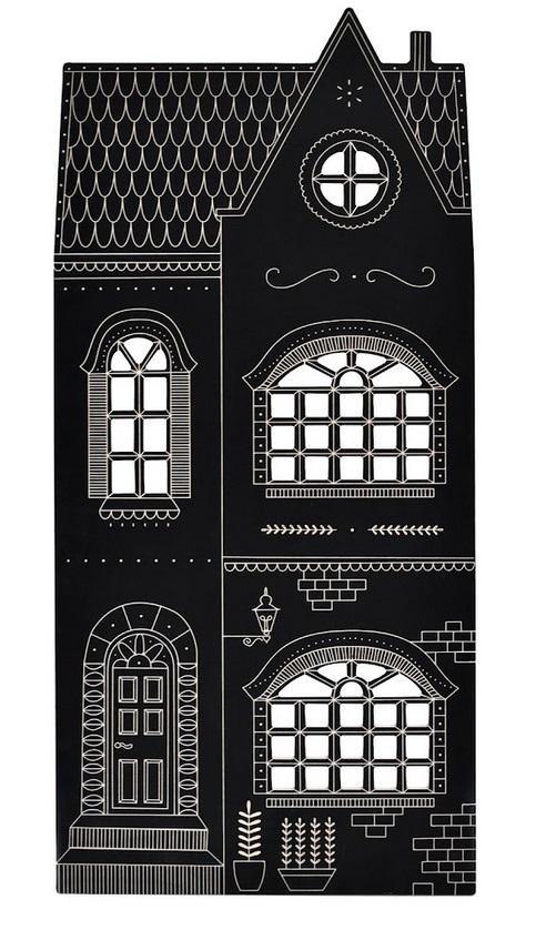 Wykonana ze sklejki brzozowej powleczonej farbą tablicową, która jest produkowana z poszanowaniem środowiska leśnego, zwierząt, roślin i ludzi co potwierdza certyfikat FSC(R). Okna posiadają otwory.