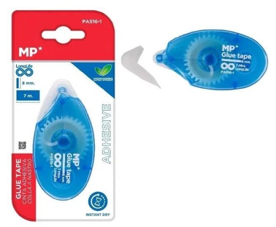 Dwustronna taśma klejąca w dyspenserze rolkowym. Doskonała przyczepność. Idealna do papieru, kartonu, zdjęć i rękodzieła. Przezroczysta niebieska obudowa, która pokazuje ilość pozostałej taśmy. Wymiary taśmy: 8 mm szerokości x 7 m długości. Wymiary dyspensera: 93mm x 47mm.