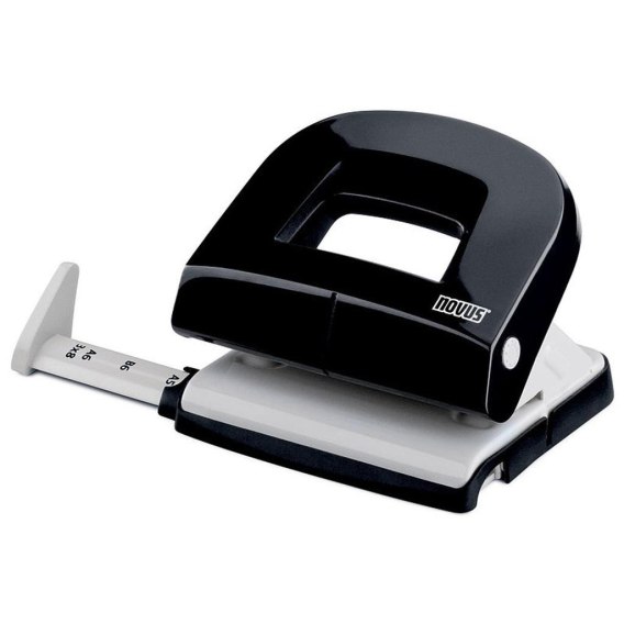 Niezawodny dziurkacz Novus E216 ogólnego użytku. Wysuwany ogranicznik formatu z czytelnym wskaźnikiem rozmiaru. Antypoślizgowa podstawa, którą można do połowy wysunąć dla opróżnienia i łatwo zamknąć. Wykonany z metalu w obudowie z tworzywa sztucznego. Dopasowany kolorystycznie do zszywaczy E20 i E25. Kolor czarny.