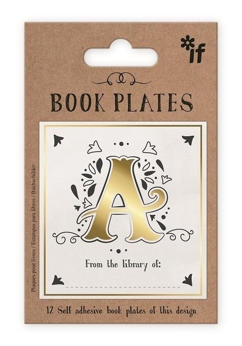 Zestaw 12 samoprzylepnych ekslibrisów z literą A. Naklejki są złocone. Całość zapakowana w eleganckie opakowanie kraft. Doskonały dodatek do prezentu dla mola książkowego.