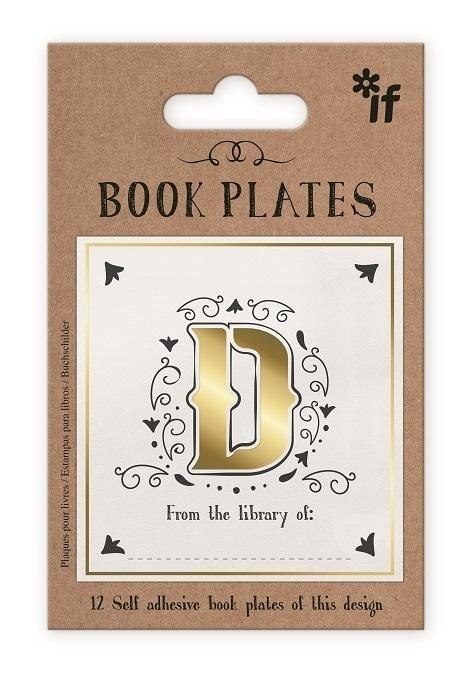 Zestaw 12 samoprzylepnych ekslibrisów z literą D. Naklejki są złocone. Całość zapakowana w eleganckie opakowanie kraft. Doskonały dodatek do prezentu dla mola książkowego.
