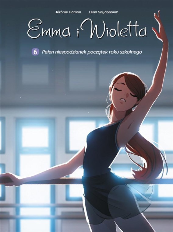 Szósty tom opowieści o siostrach kochających taniec - młodsza klasyczny, a starsza nowoczesny. Skończyły się wakacje i dziewczyny wracają do nauki. Wioletta trafia do klasy prowadzonej przez wymagającą nauczycielkę, na szczęście może liczyć na pomoc koleżanek. Emma też nie jest zadowolona z pierwszych dni w szkole, za to w Studiu 9 natrafia na kurs nowego, bardzo ciekawego tańca. Czy siostry nadal myślą o chłopakach poznanych na wakacjach? I czy zauważą, co coś dziwnego dzieje się z ich mamą? Scenarzystą serii jest Francuz Jrme Hamon, który stworzył scenariusze do kilku znanych cykli, takich jak publikowana także w Polsce historia "Green Class". Wraz z utalentowaną rysowniczką Leną Sayaphoum wykreował dwie bardzo dobrze przyjęte we Francji serie: "Dreams Factory" oraz właśnie "Emma i Wioletta".