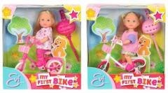 Evi w kasku na rowerze z koszykiem i bidonem.