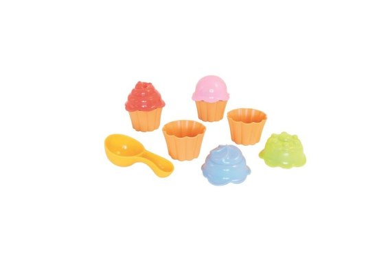 Jeśli Twoje dziecko uwielbia pomagać przy domowych wypiekach, foremki babeczki do zabawy w piasku bez wątpienia zjednają sobie jego sympatię! Kolorowy zestaw foremek warto zabierać ze sobą na każdy wyjazd nad morze lub nad jezioro. Ze względu na niewielkie rozmiary nie zajmują dużo miejsca, za to gwarantują dziecku kreatywne zajęcie na długi czas. Zabawka jest odpowiednia dla dzieci po ukończeniu dwóch lat życia.