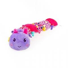 Pluszowa gąsienica zaprasza do wesołej zabawy w odkrywanie różnic w fakturze materiałów! Zabawka uszyta została ze zróżnicowanych, wzorzystych materiałów, a eksplorowanie ich dostarczy maluszkowi sensorycznych bodźców, wpływając korzystnie na rozwój jego zdolności poznawczych. Dodatkowo, w wybranych segmentach ciałka gąsienicy kryją się dźwiękowe niespodzianki, w postaci piszczałki oraz grzechotki. Brzuszek Zosi zdobi półmetrowa miarka w centymetrach i calach, którą można wykorzystać do wesołych zdjęć dziecka z zabawką, a gdy bobasek podrośnie - do nauki mierzenia.