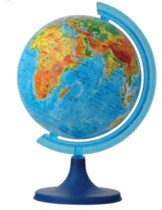 Globus 110 mm mapa fizyczna, cięciwa plastikowa, stopka plastikowa.