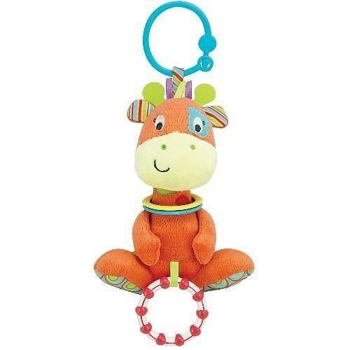 Seria zabawek Mali Kumple dedykowana już od urodzenia. Dzięki swej wyjątkowej budowie i mnogości wzorów oddziałowują na dzieci wielozmysłowo. Każda zabawka przypomina inne pluszowe zwierzątko. Poznaj je wszystkie i niech zostaną twoimi najlepszymi kumplami. Kolorowa, grzechocząca zawieszka. Przedstawia wesołą Żyrafkę. Wykonano ją z doskonałych materiałów dzięki czemu jest mięciutka bardzo kolorowa i przyjemna w dotyku. Posiada duży uchwyt mocujący służący do zwieszenia zabawki. Dziecko, potrząsając zwierzątkiem usłyszy delikatny odgłos dzwoneczka. Dodatkowo zawieszka posiada szeleszczące uszy oraz ruchome elementy doskonale stymulujące małą motorykę dziecka.