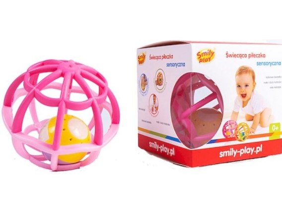 SMILY PLAY RÓŻOWA SENSORYCZNA PIŁKA GRZECHOTKA MIĘKKA ŚWIATŁO DŹWIĘK 0+