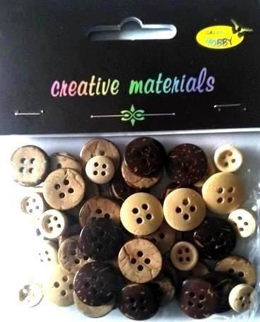 Guziki drewniane 10-15mm , miks brązow Op 20 gr. Kod: GZ014