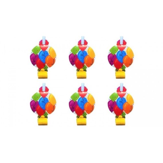 Gwizdki rozwijane z medalionem Balony 6szt