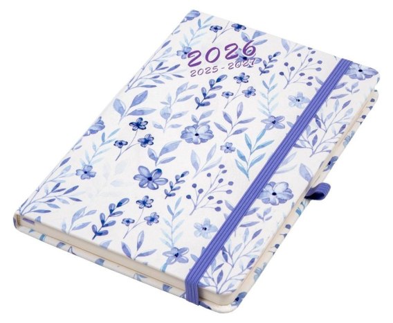 wewnątrz: plan roku i rozkład roku 2025, terminy ferii zimowych, święta oficjalne i zwyczajowe, podróże, protokół powypadkowy w przypadku stłuczki, notes, skorowidz teleadresowy, kalendarium dodatkowe na 2025-2026-2027 rok
