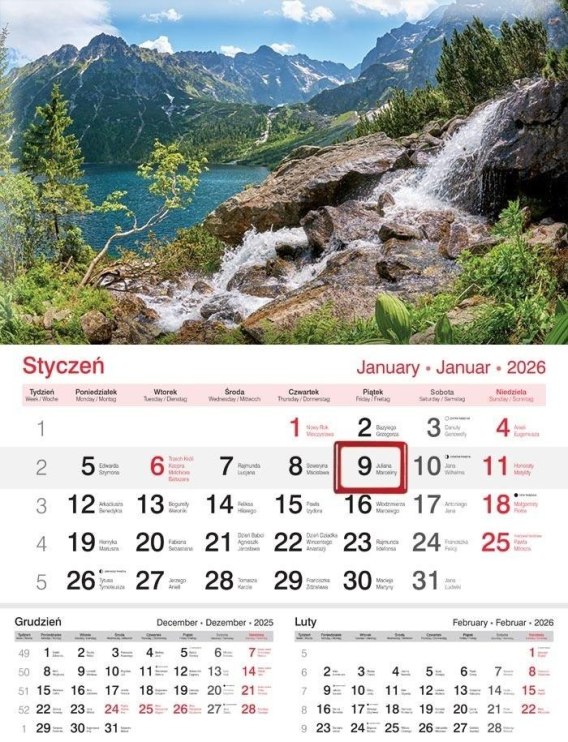 Kalendarz 2026 ścienny jednodzielny Jezioro