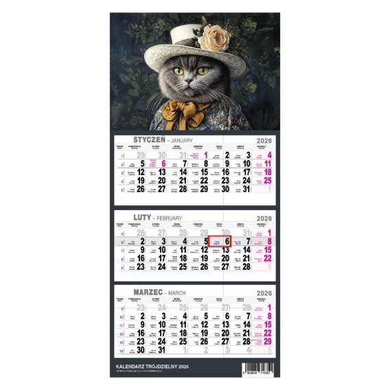 Wyposażony w wytrzymałą dziurkę, kalendarz można łatwo i bezpiecznie zawiesić na ścianie, zapewniając jego widoczność oraz dostępność w każdej chwili. Mimo mniejszego rozmiaru, kalendarz zachowuje czytelność kalendarium i komfort użytkowania.