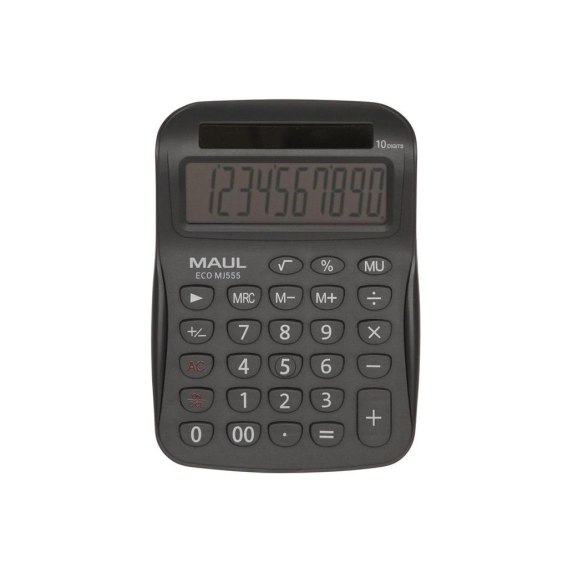Biurkowy kalkulator MAUL ECO MJ555 w kolorze szarym z dużym, 10-pozycyjnym wyświetlaczem LCD. Niezawodny, stylowy i dokładny. Doskonały do szkoły i w terenie. Kompaktowy rozmiar i zaokrąglone krawędzie sprawiają, że dobrze leży w dłoni. Z łatwymi do czyszczenia przyciskami. Zasilany energią słoneczną - brak potrzeby wymiany baterii. Wyposażony w 3 przyciski pamięci, obliczanie pierwiastków kwadratowych i procentów. Obudowa wykonana jest w 60% z recyklingowego plastiku. Gwarancja: 5 lat. Ekologiczne opakowanie z papieru i tektury, bez użycia plastiku - można je poddać recyklingowi. Certyfikowany Blue Angel.