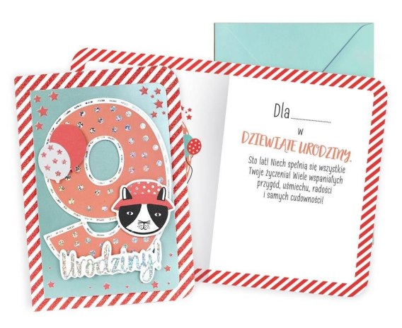 Kartka B6 z ozdobnej serii Dream Cards na Urodziny dziecięce - nieduża, ale robi wrażenie dzięki atrakcyjnej kolorystyce i ciekawym zdobieniom.