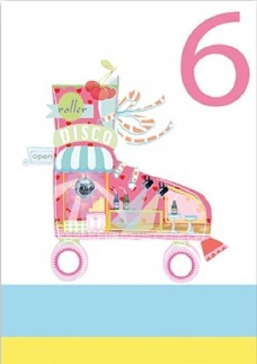 Karnet B6 brokat z kopertą Urodziny 6 dziewczynka