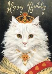 Karnet B6 brokat z kopertą Urodziny Kotka w koronie, w środku bez tekstu, wyprodukowany w Wielkiej Brytanii.