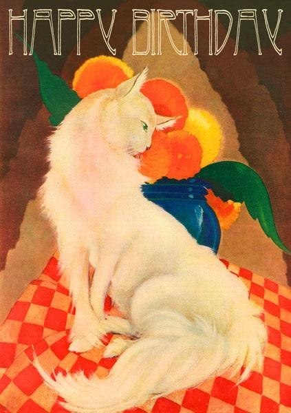 Karnet B6 z kopertą Urodziny Biały kot, w środku bez tekstu, wyprodukowany w Wielkiej Brytanii.