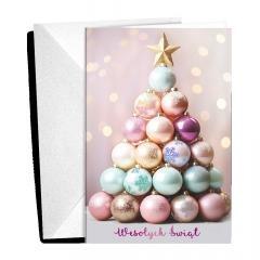 Kartka z życzeniami z dopasowaną kolorystycznie kopertą. Ozdobę stanowi folia hold. Całość zabezpieczona folią typu"open".