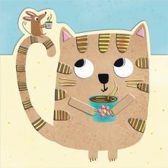 Karnet KW wycinany Urodziny - Kot z myszką