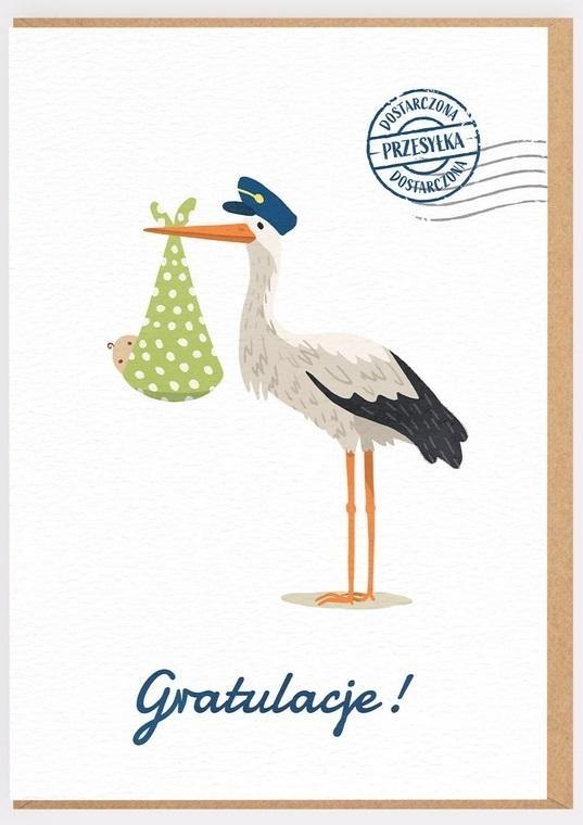 Karnet Narodziny - Bocian gratulacje