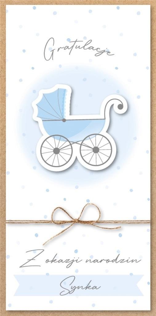 Karnet okolicznościowy z kopertą i życzeniami w środku.