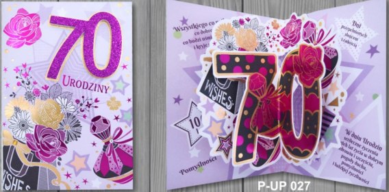 Karnet z kopertą Przestrzenny Premium B6 Urodziny 70 kobieta P-UP-027 Panorama