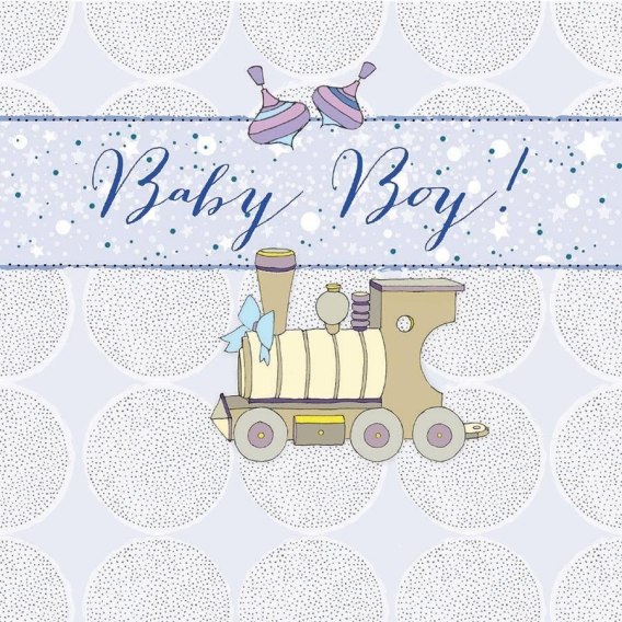 Karnet bez tekstu z kopertą, ręcznie robiony z kryształkiem Swarovski. Narodziny chłopiec pociąg