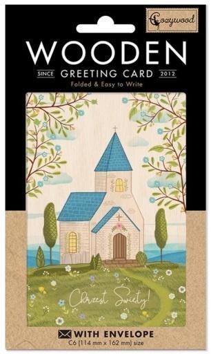Karnet drewniany C6 + koperta Chrzest Kościół