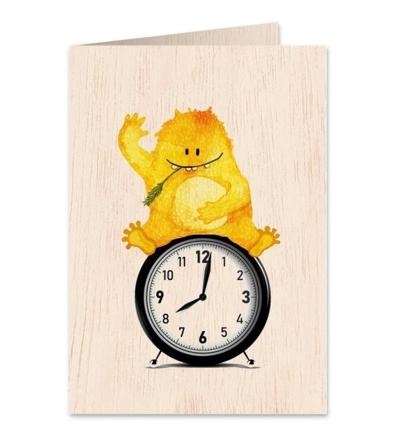 Karnet drewniany C6 + koperta Misiek na zegarze